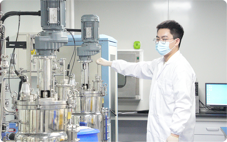 由發(fā)酵實(shí)驗(yàn)室、檢測(cè)實(shí)驗(yàn)室組成,配置有5L-50L-100L-1000L的不同體積的發(fā)酵罐,以及多種精密檢測(cè)儀器,進(jìn)行從0-1-10的發(fā)酵工藝放大,為工業(yè)化生產(chǎn)蘡定基礎(chǔ)條件。